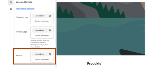 Du findest die Einstellung unter Vertriebskanäle > Onlineshop > Themes > Anpassen > Theme-Einstellungen > Logo/Favicon.