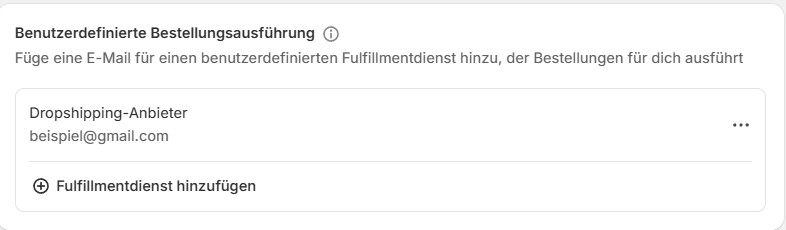 Zusätzliche Information: Wie du ein Dropshipping-Lager in Shopify verbindest, erfährst du weiter unten im Bereich „Benutzerdefinierte Bestellungsausführung“.